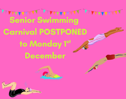 Due to circumstances beyond our control, there will be a minor change to the date of the Senior Swim Carnival. The swimming carnival will now be held on Monday, 1st of December. A program will be released closer to the date.